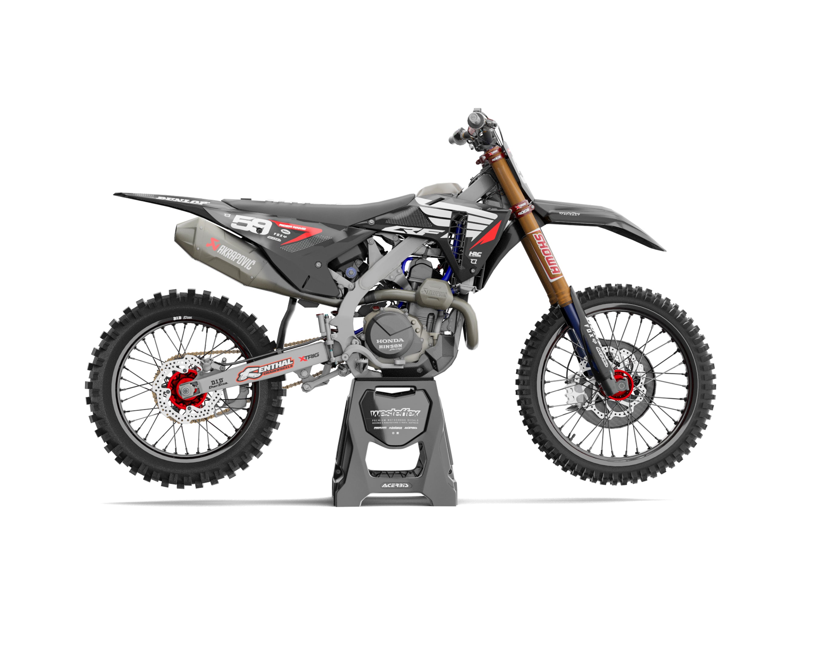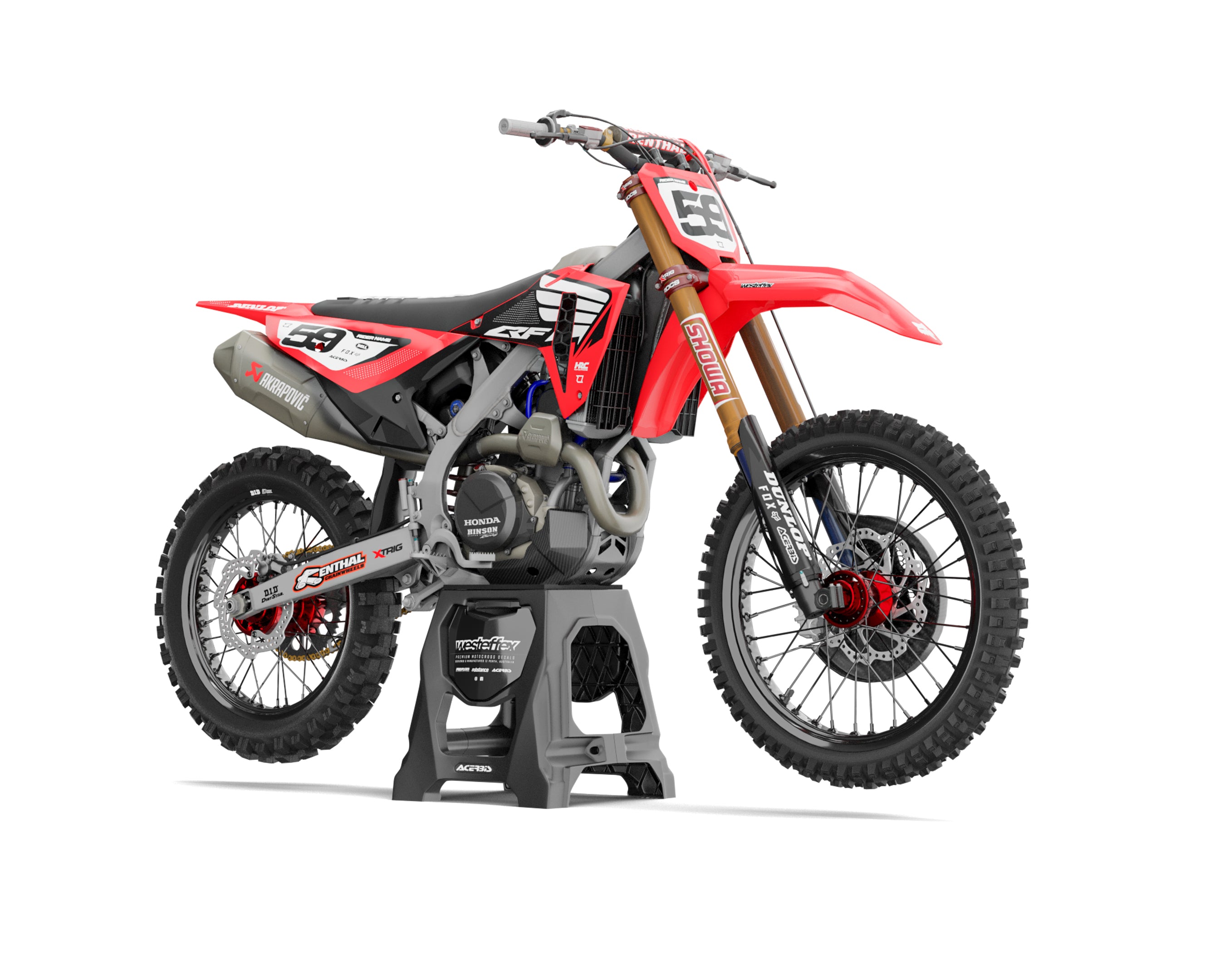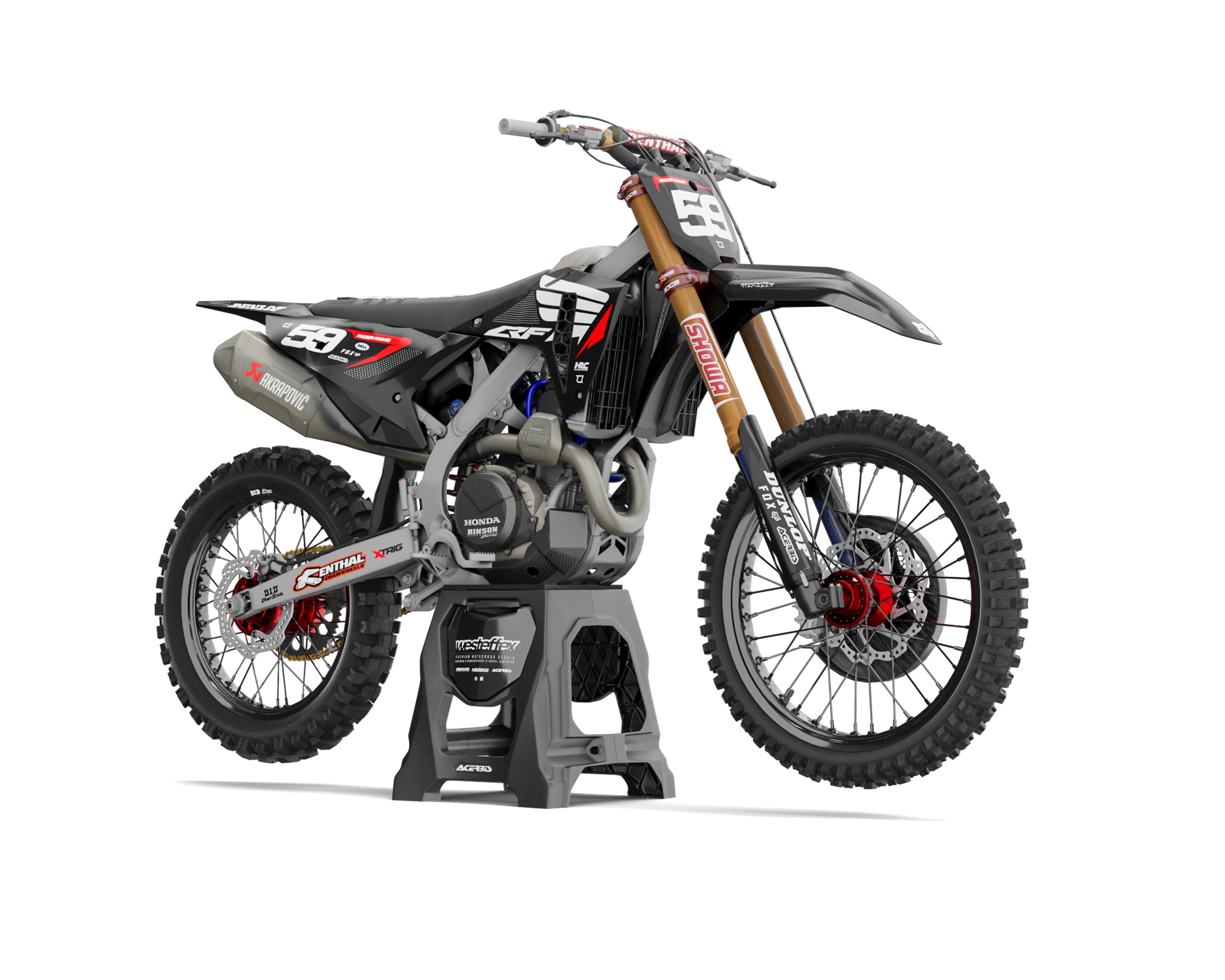 Honda, a powerhouse in the motocross world, stands as a symbol of durability and excellence. Our graphics kits pay tribute to this tradition, merging the unique aesthetics of Honda with your individual flair. They offer a way to reflect your journey as a motocross rider while honouring a brand that has shaped the sport's trajectory.