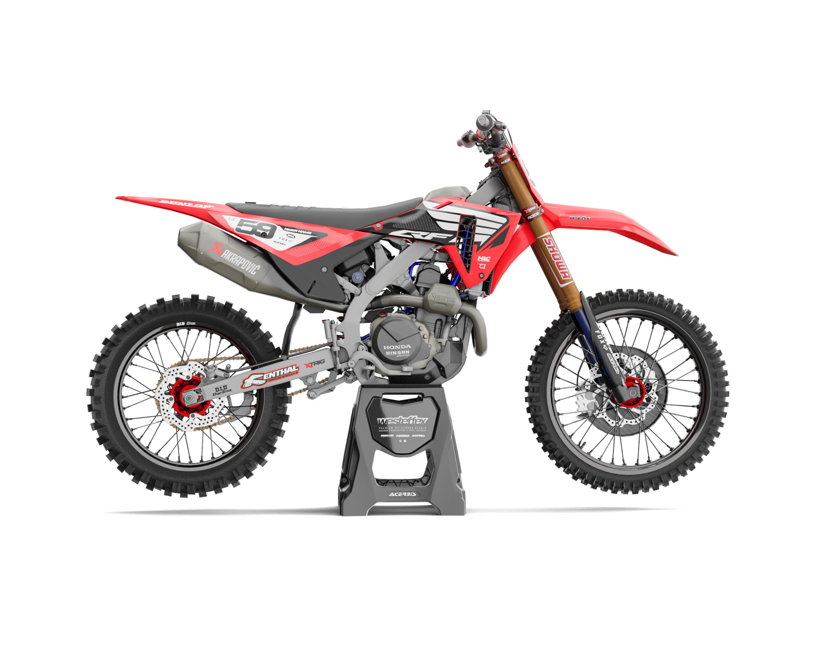Our Honda custom, semi-custom and basic graphics kits are available for the following bike models: CRF50-F, CRF70, CRF110F, CR85, CRF150R, XR250, XR400, XR600, XR650, CR125, CR250, CRF250X, CRF250L, CRF250F, CRF250R, CRF450L, CRF450X, CRF450RX & CRF450R Applicable to models built in 2000 or newer. Only decals are supplied. Plastics are not included.
