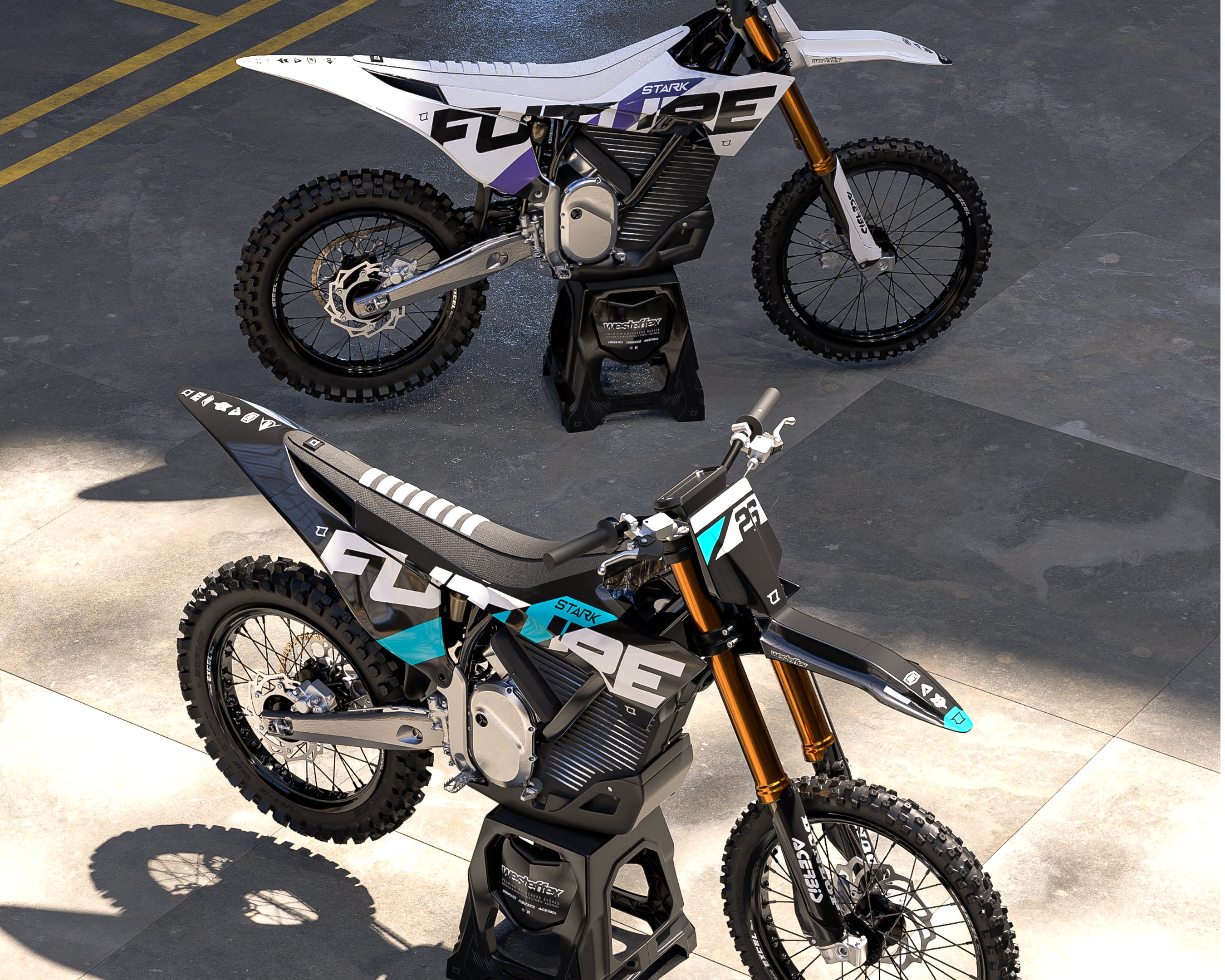 The sleek and minimal design and bodywork on the Stark Varg allow us to create a new way wave of graphics design for our decals, Basing our designs on a new minimal, and clean look.